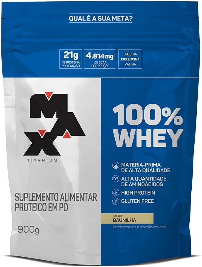 Em até 1x de R$146,65 sem jurosEm até 12x de R$13,87 com juros À vistaR$131,99no Pix100% Whey Refil (900G) – Baunilha – Max Titanium