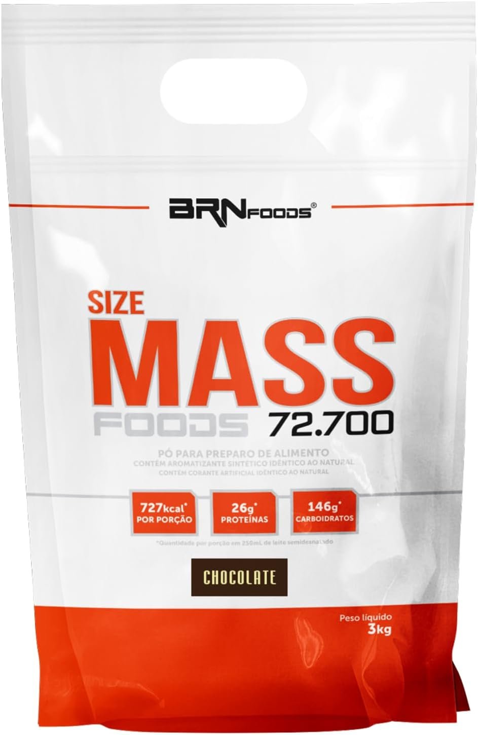 Em até 1x de R$35,86 sem jurosEm até 12x de R$3,39 com juros À vistaR$32,27no PixHipercalórico Size Mass Foods 72.700 Chocolate 3kg – BRN Foods
